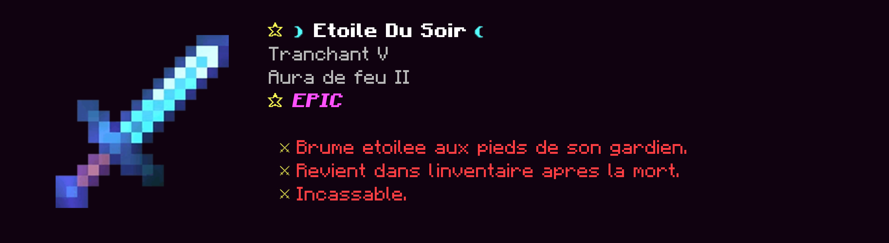 <figure><img src="https://1623388779-files.gitbook.io/~/files/v0/b/gitbook-x-prod.appspot.com/o/spaces%2FvELZSPZgSmCUR68fgMqP%2Fuploads%2FcEveDxiTyphbG3bPD9Mw%2FEtoile_Du_Soir.png?alt=media&#x26;token=9b307dab-06ff-49b5-8a75-35baa2404f33" alt=""><figcaption></figcaption></figure>